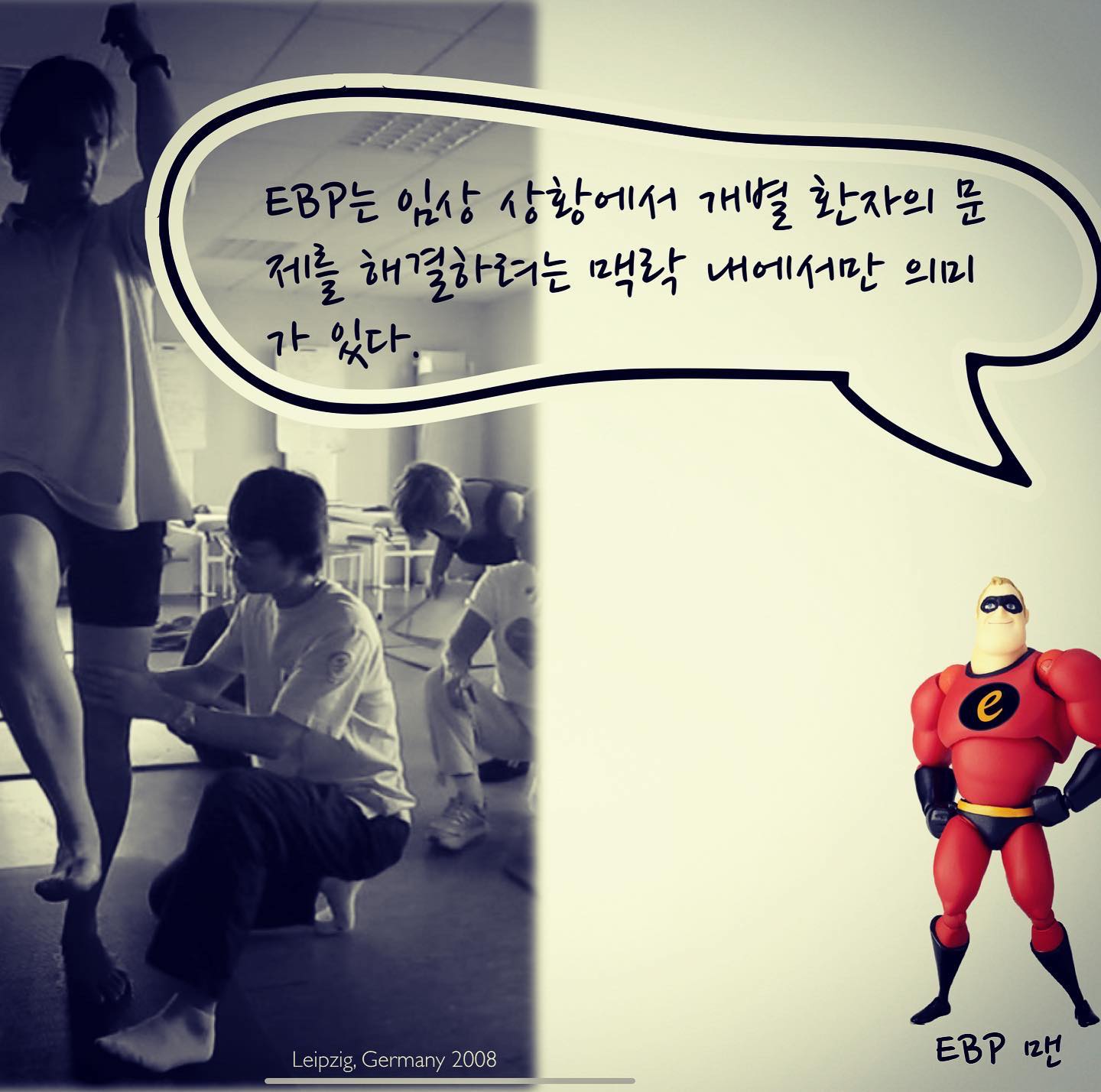 몇 주 전, 온라인으로 EBP라는 주제를 다루는 모 대학 학부 수업에서 관련 특강을 했다. 특강을 하면서 가장 많이 강조했던 말은 위에서 한 말이었다. 맥락이 빠진 EBP는 아무 의미도 없다.